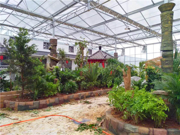 溫室特點:我公司秉承多年承建溫室的經驗,大膽探索溫室的新用途,開“生態餐廳”之先河,率先在北京、青島等地承建了生態餐廳,并為客戶贏得了可觀的經濟收益。