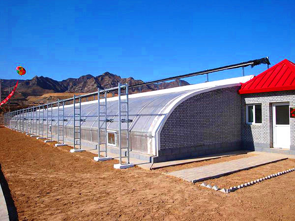 前坡面夜間用保溫被覆蓋,東、西、北三面為圍護(hù)墻體的單坡面塑料溫室,統(tǒng)稱為日光溫室。其雛型是單坡面玻璃溫室,前坡面透光覆蓋材料用塑料膜代替玻璃即演化為早期的日光溫室。日光溫室的特點是保溫好、投資低、節(jié)約能源,非常適合我國經(jīng)濟(jì)欠發(fā)達(dá)農(nóng)村使用。